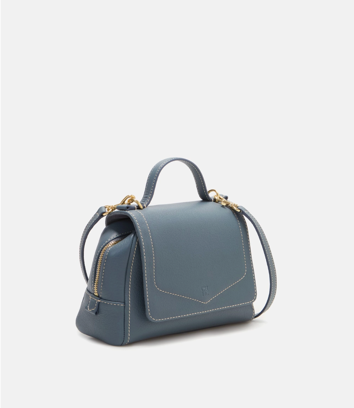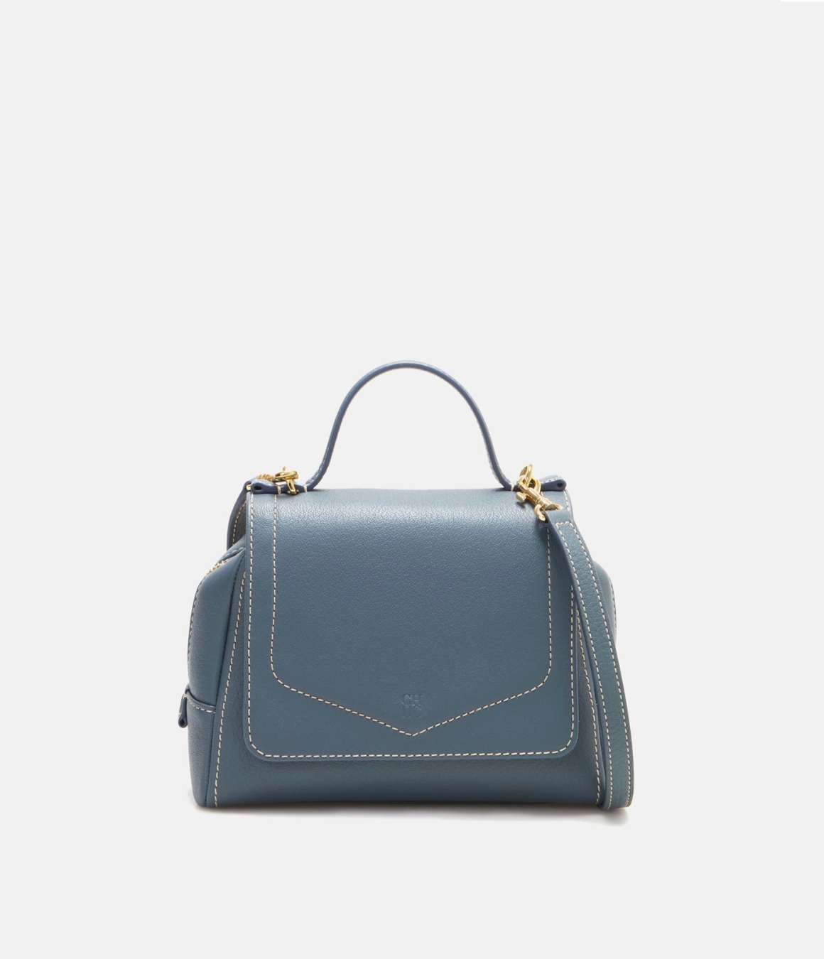 El bolso Mini Blasón Satchel está elaborado a mano en piel Mocán de grano fino y uniforme, destacando por su blason característico con costuras en contraste y las iniciales de Carolina grabadas en la solapa. Su diseño combina elegancia y funcionalidad, con una correa desmontable y un asa de piel que permiten llevarlo cruzado, al hombro o en la mano, adaptándose a cualquier ocasión.