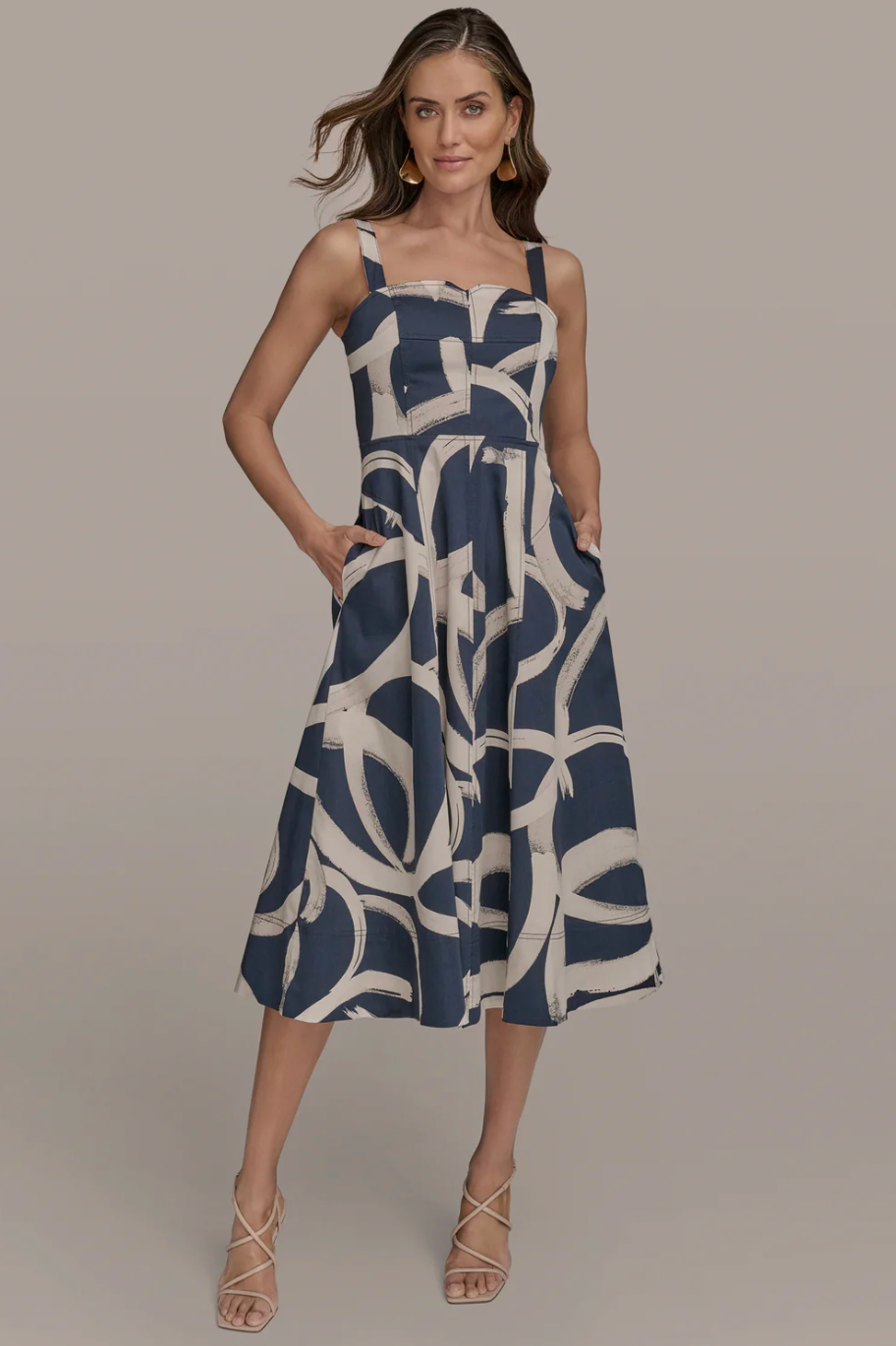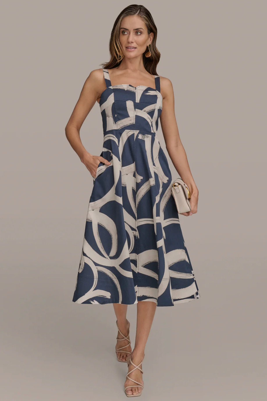 Vestido midi sin mangas confeccionado en algodón, con un diseño estampado que combina un encanto clásico con un estilo moderno. Su silueta elegante y versátil lo convierte en una pieza ideal para usar temporada tras temporada. Un vestido de Donna Karan perfecto para lograr looks sofisticados y frescos, tanto para el día como para ocasiones especiales.